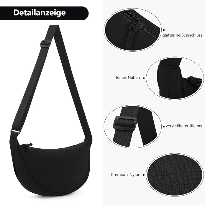 Halbmond-Umhängetasche für Damen – Verstellbarer Schultergurt